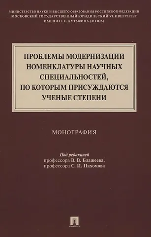 Проблемы модернизации номенклатуры научных специальностей, по которым присуждаются ученые степени. Монография