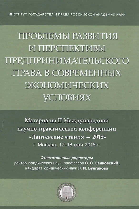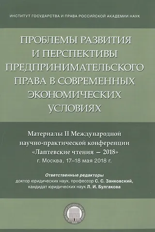 Проблемы развития и перспективы предпринимательского права в современных экономических условиях. Материалы II Международной научно-практической конференции "Лаптевские чтения - 2018" г. Москва, 17-18 мая 2018 г.