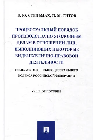 Процессуальный порядок производства по уголовным делам в отношении лиц, выполняющих некоторые виды публично-правовой деятельности (глава 52 Уголовно-процессуального кодекса Российской Федерации): учебное пособие