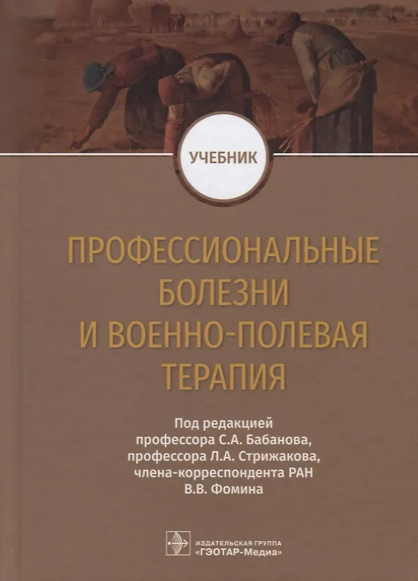 В учебнике изложены вопросы диагностики, лечения и профилактики пылевых заболеваний легких, вибрационной болезни, профессиональной нейросенсорной тугоухости, хронических интоксикаций, профессиональных заболеваний кожи, профессиональных поражений репродуктивной системы, зрительного анализатора, онкологических заболеваний. Приведена информация, отражающая профессиональные заболевания вследствие функционального перенапряжения и биологических факторов. Разобраны принципы диагностики профессиональных заболеваний при периодических медицинских осмотрах и связи заболевания с профессией в клинической картине профессиональных болезней. Издание содержит основные разделы военно-полевой терапии с учетом