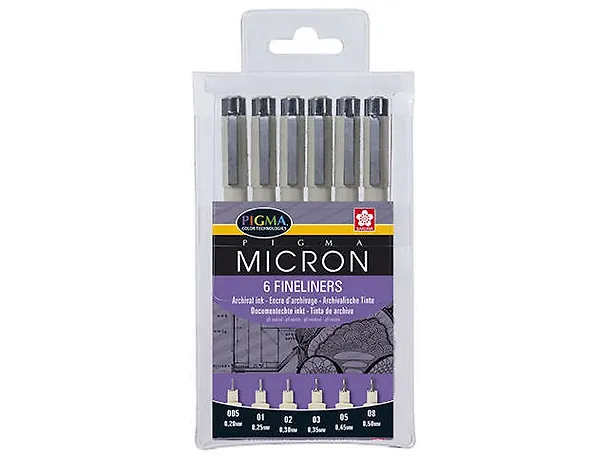 Профессиональный линер PIGMA MICRON 6шт (0,2мм, 0,25мм, 0,3мм, 0,35мм, 0,45мм, 0,5мм) черный в блист., Bruynzeel
