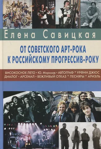 Название новой книги Елены Савицкой «От советского арт-рока к российскому прогрессив-року» говорит само за себя. В работе анализируются стилевые принципы советского и российского прогрессив-рока, его формы и многочисленные разновидности в их историческом развитии. Рассмотрен творческий путь и наиболее значительные произведения таких коллективов, как MESS, RUJA, 2хВВМ, АВТОГРАФ, АРИЭЛЬ, АРСЕНАЛ, ВИСОКОСНОЕ ЛЕТО,