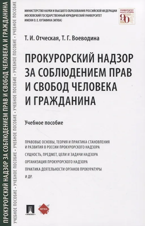 Настоящее издание представляет собой конечный результат исследования, посвященного изучению важного направления прокурорской деятельности — прокурорского надзора за соблюдением прав и свобод человека и гражданина. В нем изложены: правовые основы, теория и практика становления и развития в России прокурорского надзора за соблюдением прав и свобод человека и гражданина; сущность, предмет, цели и задачи данного надзора; его соотношение с прокурорским надзором за исполнением федерального законодательства и надзором за соответствием законам издаваемых правовых актов, а также вопросы организации прокурорского надзора за соблюдением прав и свобод человека и гражданина, полномочий прокурора, мер про