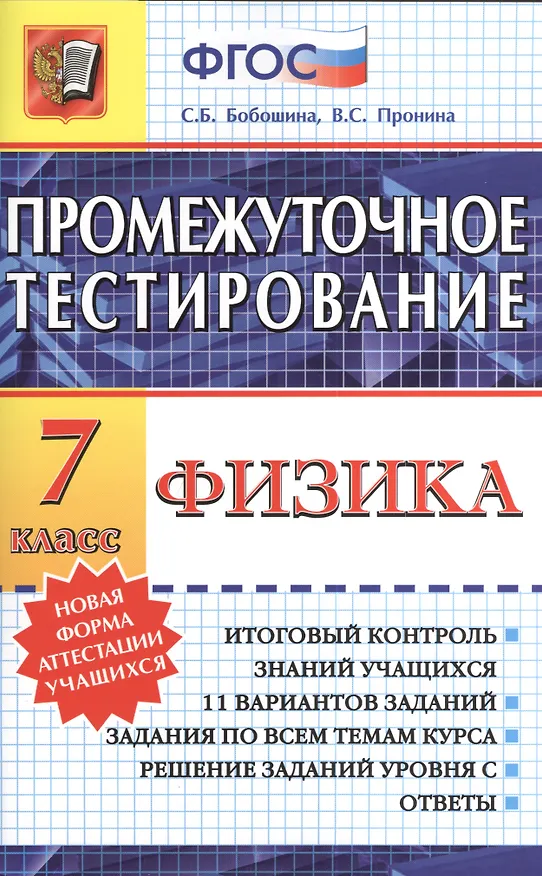 .Предлагаемое пособие предназначено для промежуточного тестирования по курсу физики учащихся 7 классов. Издание даст возможность проверить знания семиклассников в соответствии с требованиями основного образовательного стандарта по физике, а также поможет сформировать навыки и умения, необходимые для успешного прохождения Государственной итоговой аттестации по физике в 9 классе.