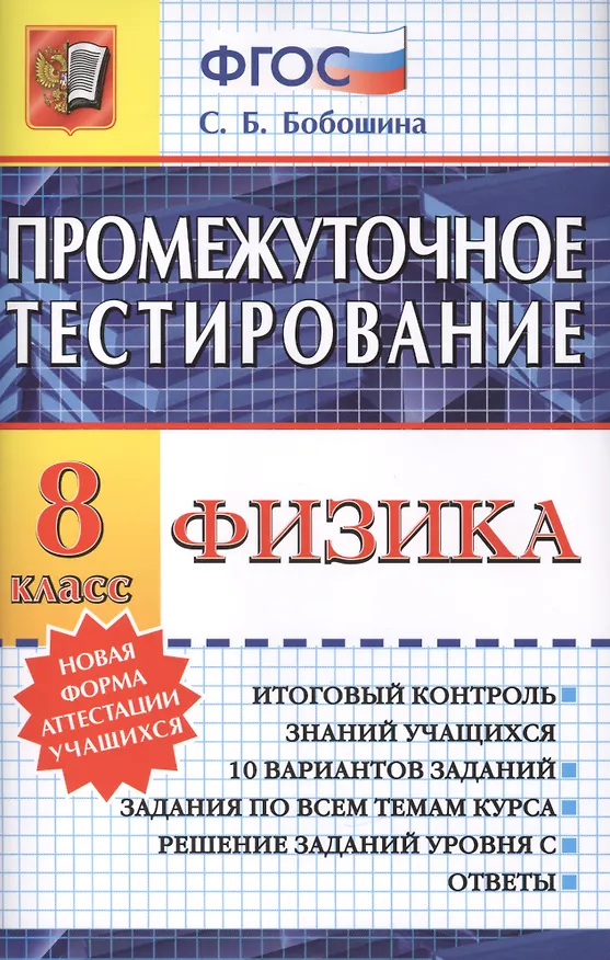 Светлана Бобошина «Промежуточное тестирование. Физика. 8 класс.» и выбрать удобный способ его получения: самовывоз, доставка курьером