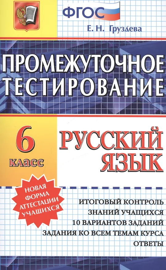 Данное пособие полностью соответствует федеральному государственному образовательному стандарту (второго поколения). Пособие включает 10 вариантов заданий для проведения контроля знаний учащихся в конце года и дает учителю возможность быстро провести диагностику усвоения школьниками материала 6 класса. Задания составлены с учетом всех изученных тем курса русского языка, ко всем заданиям даны ответы. Издание рассчитано на учителей русского языка, методистов, родителей, оно также может быть использовано учащимися для самоконтроля. Приказом № 729 Министерства образования и науки Российской Федерации учебные пособия издательства "Экзамен" допущены к использованию в общеобразовательных учреждения