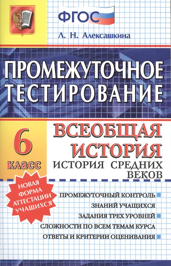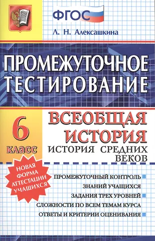 Людмила Алексашкина «Промежуточное тестирование. Всеобщая история. История Средних веков: 6 класс» и выбрать удобный способ его получения: самовывоз, доставка курьером