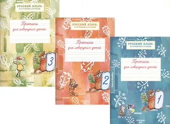 Комплект прописей состоит из 3-х тетрадей, предназначенных для обучения письму леворуких детей. Прописи являются частью учебно-методического комплекта «Русский язык от ступени к ступени. Произношение, чтение, письмо».