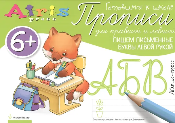 .Особый раскладной клапан с образцами букв и слов удобно трансформируется, и во время письма ребёнок видит перед собой нужную информацию. А схема посадки при письме и подсказки, как лучше держать ручку, очень помогут ребёнку на первых занятиях. Взрослые оценят полезную информацию для организации занятий с ребенком.