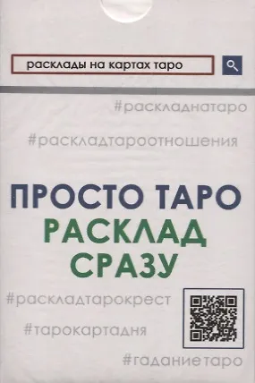 Эта колода, как и всякая в нашей серии "Учиться – это просто", призвана помочь новичкам в мире предсказательных мантик. Основу, базу "Просто Таро: расклад сразу" составляет уже известная нашему покупателю колода "Просто Таро: ответ сразу". Это те же знакомые каждому тарологу арканы Таро Уэйта, на которых мы написали для вас прямые и перевернутые значения. В нашей новой колоде мы решили идти дальше и в помощь начинающим тарологам добавили важнейший элемент, без которого гадание на Таро просто лишается всякого смысла: расклады. В колоде "Просто Таро: расклад сразу" вас ждет не две, а целых восемь раскладных карт! Мы включили в этот набор расклады на те темы, которые всегда являлись самыми живо