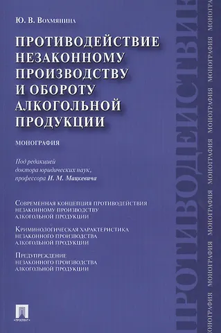 Настоящая монография посвящена борьбе с незаконным производством и оборотом алкогольной продукции. В работе дается понятие преступной деятельности по незаконному производству и обороту алкогольной продукции, раскрываются причины этой деятельности, дана криминологическая характеристика ее форм и видов. Освещены проблемы алкоголизации россиян, раскрываются причины отравления фальсифицированной алкогольной продукцией, предлагаются различные меры противодействия как незаконному производству и обороту алкогольной продукции, так и смягчению последствий от пьянства и алкоголизма граждан. Монография представляет интерес для криминологов, социологов, специалистов уголовного и административного права,