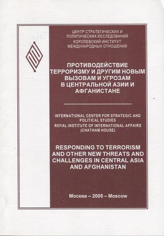 В данной публикации собраны доклады, представленные на международном семинаре "Противодействие терроризму и другим новым вызовам и угрозам в Центральной Азии и Афганистане" (Москва, 20-21 мая 2004 года). Семинар был организован совместно Центром стратегических и политических исследований (Москва) и Королевским институтом международных отношений (Лондон) при поддержке Корпорации Карнеги (Нью-Йорк). Данная публикация осуществлена также при поддержке Совета по социальным и экономическим исследованиям (Великобритания).
