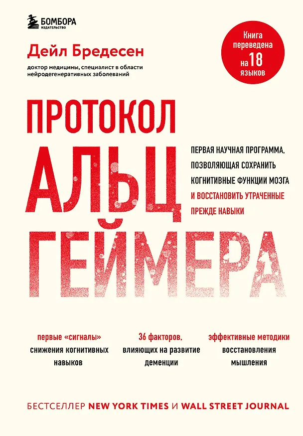 Болезнь Альцгеймера — неизлечимое заболевание. Все современные медикаментозные методы лечения направлены лишь на торможение снижения когнитивных способностей. Генетика не добавляет оптимизма — наличие в геноме гена APOE4 гарантированно приводит к развитию болезни в 60—70-летнем возрасте. НО! Во-первых, ген может и не включиться. Во-вторых, половина больных деменцией этого гена не имеют, а болезнь, тем не менее, развивается. И, в-третьих, на самом деле в мире есть люди, восстановившие свои когнитивные способности даже после сильного их снижения. Речь идет о прорыве в области нейродегенеративных заболеваний, программе ReCODE, которую высоко оценили и отечественные специалисты. Суть тут в том, что на самом деле болезнь Альцгеймера оказалась многофакторным заболеванием. То есть на ее развитие влияет не одна причина, а совокупность нескольких. Всего на сегодня насчитывается 36 факторов риска. Исключив их, даже имея генетическую предрасположенность к болезни, можно никогда не получить снижения когнитивных навыков. Книга доктора Бредесена — пошаговое руководство к тому, как сохранить свой мозг до глубокой старости невредимым.