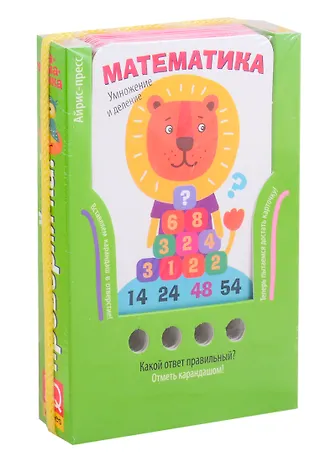 Первая игра с карточками построена по типу теста. Нужно выбрать правильное числовое выражение, найти пропущенное число и т. п., затем выбрать подходящий вариант ответа и вставить карандаш в отверстие под ним. Если ответ правильный, то карточка легко вынимается из блока. Если ребёнок выбрал неверный вариант ответа, он не сможет вытянуть карточку и перейти к следующему заданию.