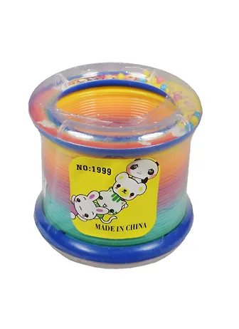 Пружинка состоит из всех цветов радуги и при растяжки и стяжки цвета начинают переливаться.