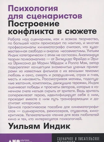 Работа над сценарием, как и всякое творчество, по большей части происходит по наитию, и многие профессионалы кинематографа считают, что художественная свобода и анализ несовместимы. Уильям Индик категорически с этим не согласен. Анализируя теории психоанализа — от Зигмунда Фрейда и Эрика Эриксона до Морин Мердок и Ролло Мэя, автор подкрепляет концепции знаменитых ученых примерами из известных фильмов с их вечными темами: любовь и секс, смерть и разрушение, страх и гнев, месть и ненависть. Рассматривая мотивы, подспудные желания, комплексы, движущие героями, Индик оценивает победы и просчеты авторов, которые в конечном счете нельзя скрыть от зрителя. Ведь зритель сопереживает герою, идентифи