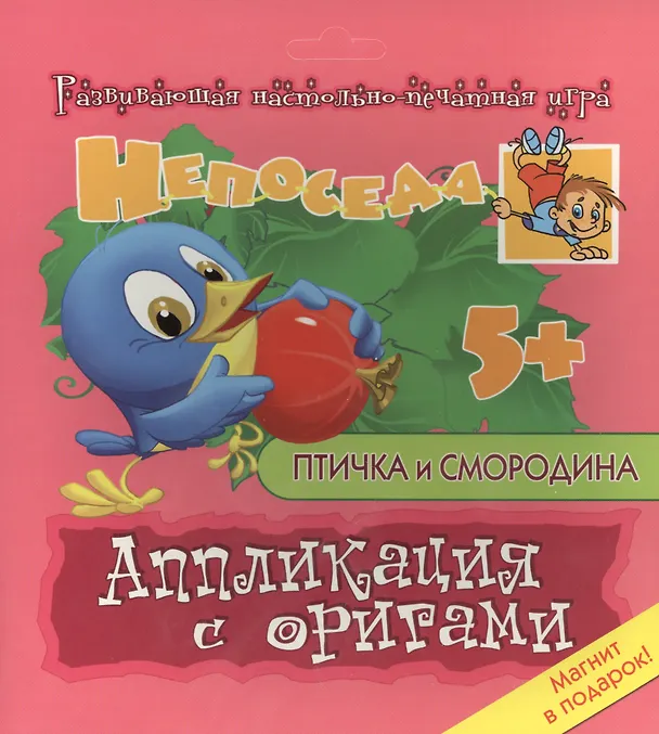 заказали с распродажи , меньше, чем за 40 руб.упаковка чуть повреждена была,но содержимое в целости и сохранности. идея оригами очень хорошая:птичка на ветке со смородиной.смородину надо сделать самим,она будет объемная.ребенку 6 лет не составило труда разрезать заготовку на квадраты,даже сложить.но!эта смородина совсем не коснется на идеально гладкую глянцевую поверхность ни одним клеем.интерес ребенок потерял на второй отваливающейся ягодке.