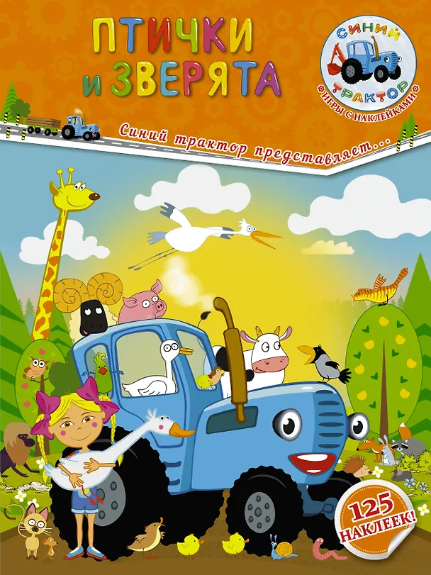 Книга о приключениях Синего трактора, главного героя популярных мультфильмов в сети Интернет, собравших миллионы просмотров и десятки тысяч подписчиков, включает забавные игры с участием птичек и зверят, которые обитают в лесу. Малышу будет интересно самому отыскать владельцев звонких голосов и милых мордочек. А пестрые наклейки помогут малышу в развитии пространственного мышления, цветовосприятия и мелкой моторики.