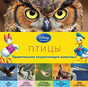 Герои Disney приглашают маленьких читателей в чудесный мир птиц! В компании любимых персонажей ребёнок узнает о том, зачем птичкам перья и клювы, как они вьют гнёзда, почему страусы прячут головы в песок, бывают ли подземные птицы... Малыша ждут не только любопытнейшие факты, изложенные доступным и увлекательным языком, но и восхитительные фотографии — большие, яркие и красочные! А ещё благодаря этой книге ребёнок разовьёт познавательные способности, кругозор и структурное мышление, а также получит первый опыт работы с энциклопедической литературой.