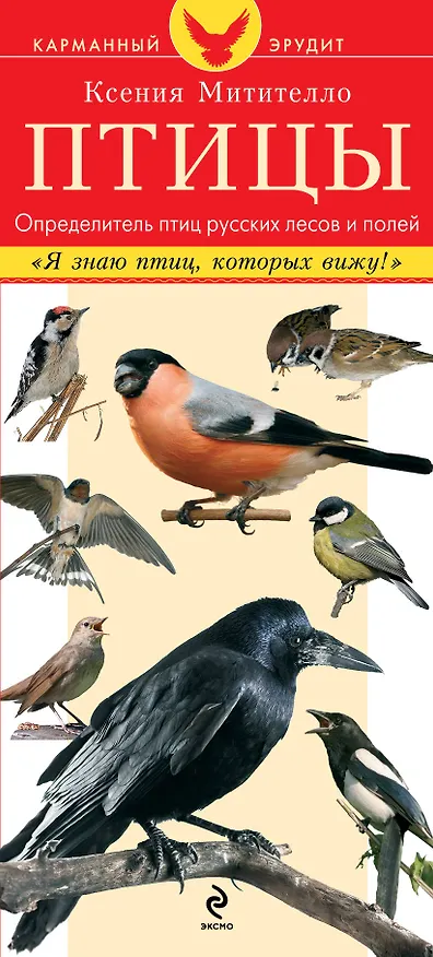 Карманный определитель - незаменимый помощник каждого любителя родной природы. Его удобно брать с собой в лес и на прогулку! Этот справочник познакомит читателя с 60 видами птиц, обитающих в средней полосе России. Оригинальна конструкция обложки: клапан-раскладушка на 1-й сторонке, на котором представлены цветные фотографии всех упоминающихся в книге видов.