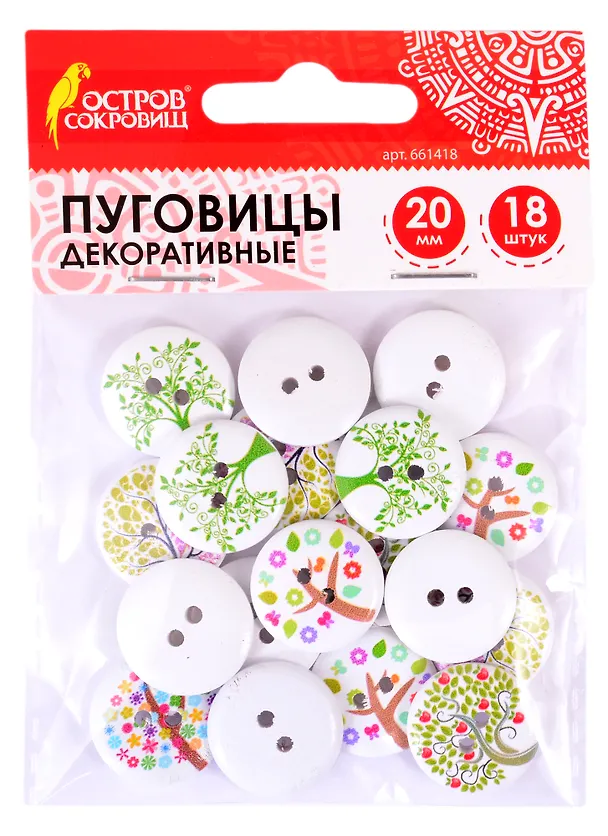 Пуговицы декоративные Деревце (20 мм) (18 шт) (661418) (3+) (дерево) (упаковка) (Остров сокровищ)