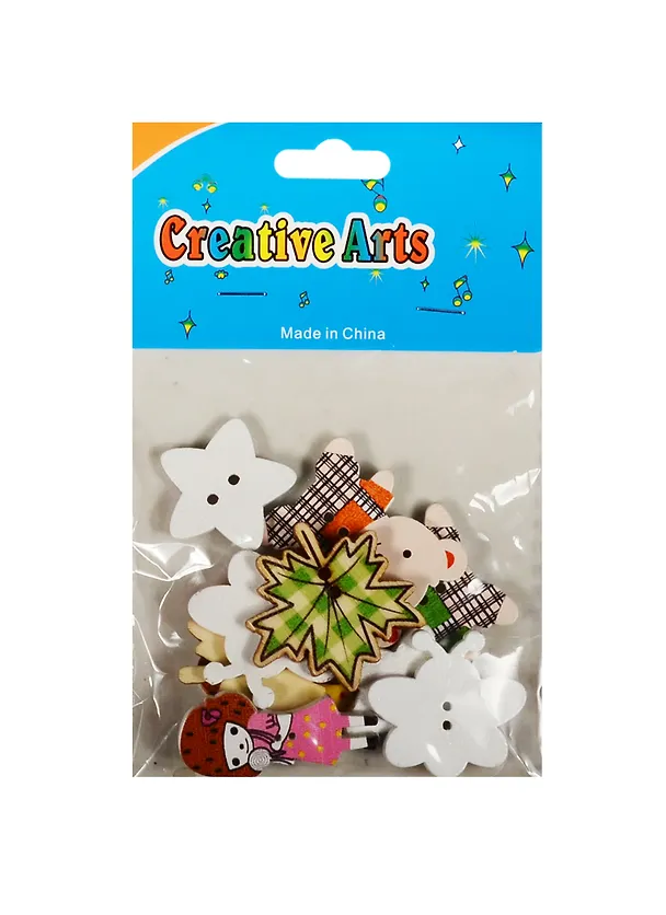 Пуговицы деревянные Мишка, девочка и цветные листики (10шт)