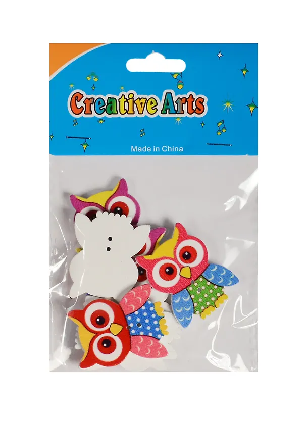 Пуговицы деревянные Совы (3,5см) (8шт) (пакет) (11-24067-L38)