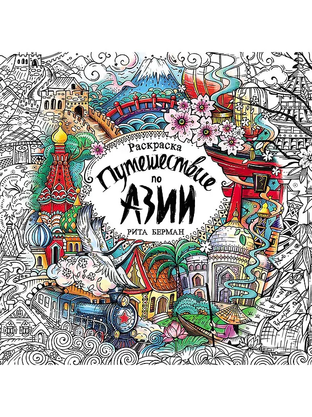 Раскраска Риты Берман перенесет вас в удивительный мир Азии: от Транссибирской магистрали и цветущей японской сакуры через Великую Китайскую стену и тропические пляжи к шумным восточным базарам и волшебной Индии. Эта раскраска-антистресс поможет сделать паузу и отдохнуть после насыщенного дня. Берите карандаши, вдохновляйтесь красотой деталей и творите с удовольствием!