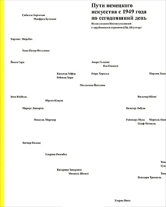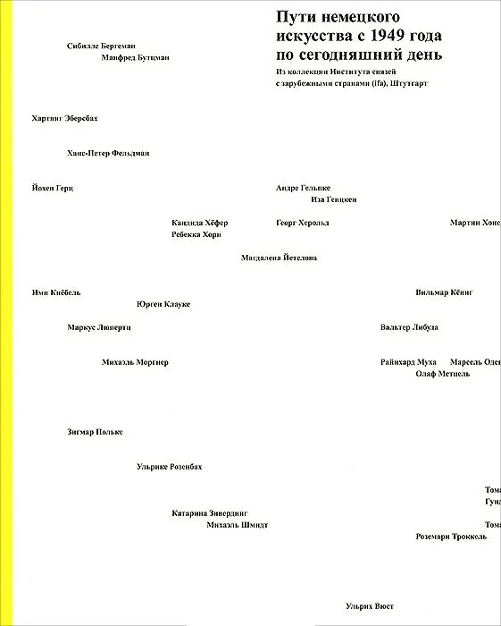 Издание приурочено к выставке "Пути немецкого искусства с 1949 по сегодняшний день. Из коллекции Института связей с зарубежными странами (ifa), Штутгарт", проводившейся в Москве в апреле-сентябре 2014 г. Московским музеем современного искусства и Гёте-Институтом. Благодаря масштабной работе, проделанной двумя выдающимися немецкими кураторами - Маттиасом Флюгге и Маттиасом Винценом, в одной экспозиции была собрана невероятная по своему богатству подборка, охватывающая порядка 400 работ авторства почти 100 художников.