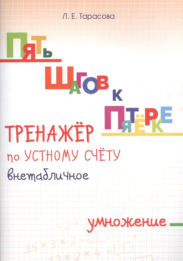 «Пять шагов к пятерке» - новый вид тренажера, целью которого является тренировка учащихся в усвоении внетабличного умножения-деления чисел. Для облегчения процесса тренировки нами разделены действия: отдельно дается умножение, отдельно деление. В данной тетради представлено только внетабличное умножение. Чтобы не утомлять ребенка однообразием счета, нами вставлены после парных однотипных страниц игровые страницы. В данной тетради предусмотрена возможность оценить правильность счета: раскрасить лицо клоуна. Последнее, пятое задание, на странице направлено на скорость, поэтому его можно использовать с секундомером или с установленным заранее временем. Центральные страницы-контрольные, предвари
