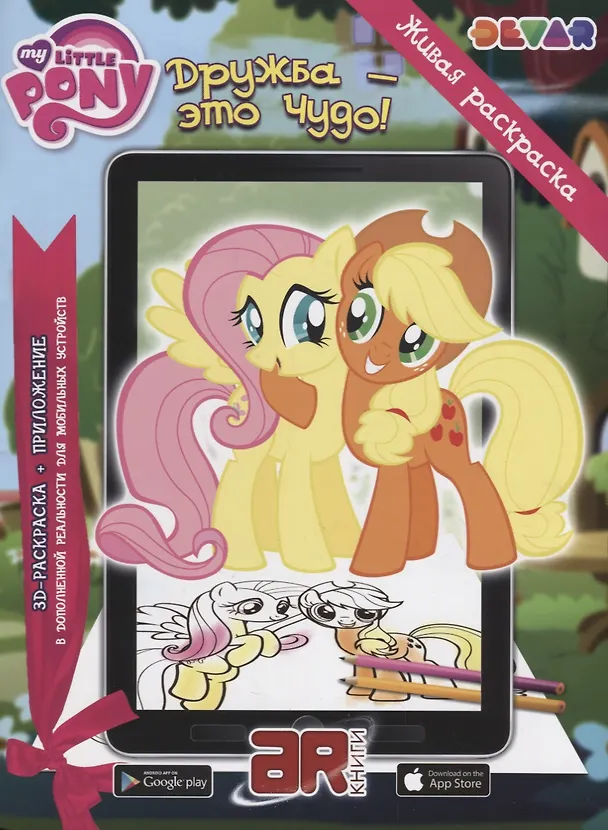 Это не просто раскраска, а волшебная история о приключениях героев из Понивилля, оживающих прямо у тебя на руке! С помощью бесплатного мобильного приложения Devar KIDS ты можешь перенести любимых Пони с экрана в реальный мир и узнать как много магического и сказочного в дружбе! Хочешь увидеть полёт Радуги Дэш или магию Сумеречной Искорки? Каждая страница раскраски "Дружба - это Чудо!" покажет тебе особенные навыки любимых героев и перенесёт их в твой мир! А в конце книги ты сможешь играть со всеми Пони сразу! - Самые яркие моменты любимого мультфильма с живыми героями у тебя на руке! - 11 героев - 14 игр - 14 анимационных историй в дополненной реальности*!