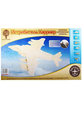 Р137 Сборная деревянная модель Истребитель Харриер (53 дет.) (20х10х14) (Авиация) (Чудо-Дерево) (3+)