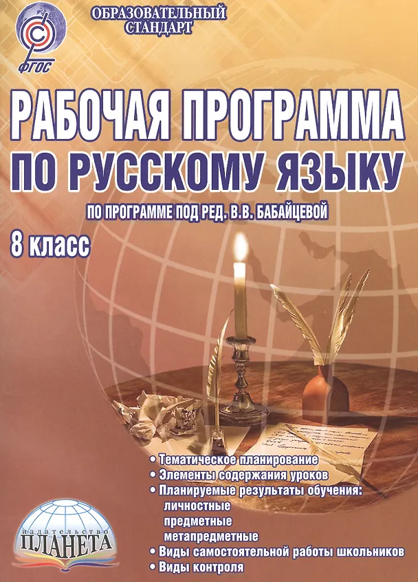 Рабочая программа по русскому языку. 8 класс. По программе под ред. В.В. Бабайцевой. Методическое пособие