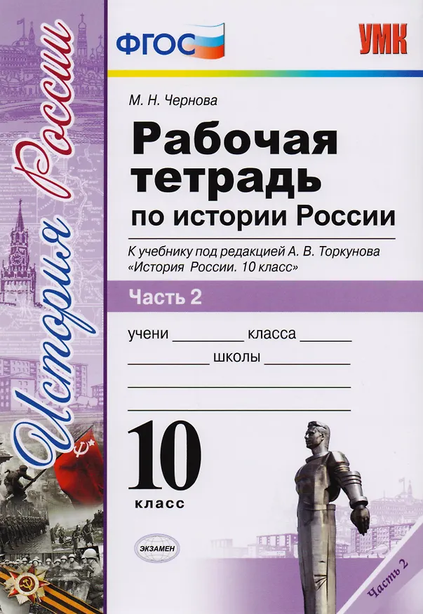 Марина Чернова «Рабочая тетрадь по истории России. В 3 частях. Часть 2: 10 класс: к учебнику под ред. А.В. Торкунова "История России. 10 класс". ФГОС» и выбрать удобный способ его получения: самовывоз, доставка курьером