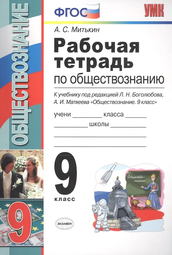 Рабочая тетрадь по обществознанию 9 кл. (к уч. под ред. Боголюбова) (8 изд) (мУМК) Митькин (ФГОС)