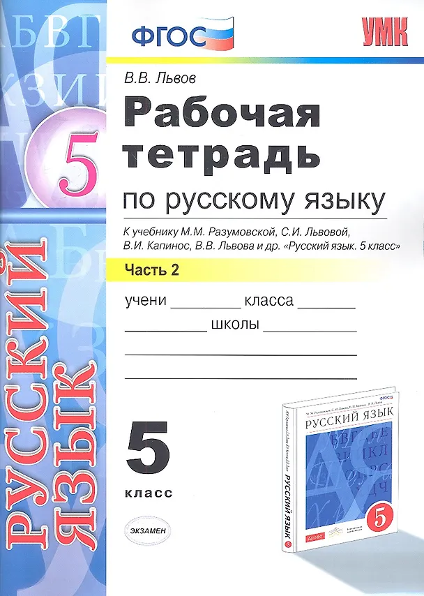 Рабочая тетрадь по русскому языку. К учебнику М.М. Разумовской, С.И. Львовой, В.И. Капинос, В.В. Львова и др. "Русский язык. 5 класс". Часть 2. 5 класс полностью соответствует федеральному государственному образовательному стандарту второго поколения