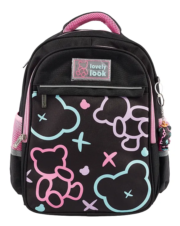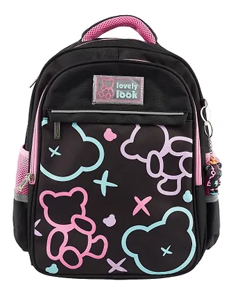 Удобный школьный рюкзак для девочки. Большая часть рюкзака хоть и выполнена в черном цвете, но за счет розовых вставок совершенно не смотрится мрачным. Зато цвет практичный, вообще не марается. Спинка у рюкзака ортопедическая, что не мало важно для ребенка. По бокам удобные карманы - сетки, в одном ребенок носит зонт, а в другом бутылка для воды. Внутри рюкзака помещается все необходимое для школы.