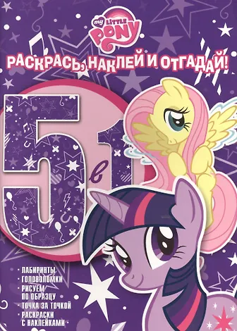 В этой развивающей книжке - столько интересного: в ней можно рисовать, раскрашивать, приклеивать наклейки и решать весёлые задачки! Открой книжку и поиграй с подружками-пони!