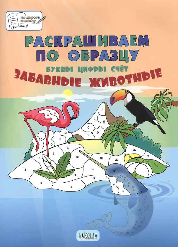 Раскрашиваем по образцу. Забавные животные. Буквы, цифры, счет