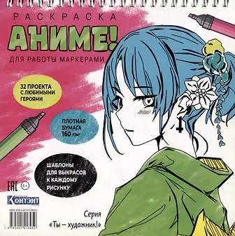 Вашему вниманию предлагается Раскраска Аниме для работы маркерами (розовая, девочка в зеленом кимоно)