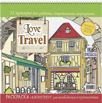 Love Travel. Раскраска-антистресс для влюбленных в путешествия. 32 проекта для работы спиртовыми маркерами
