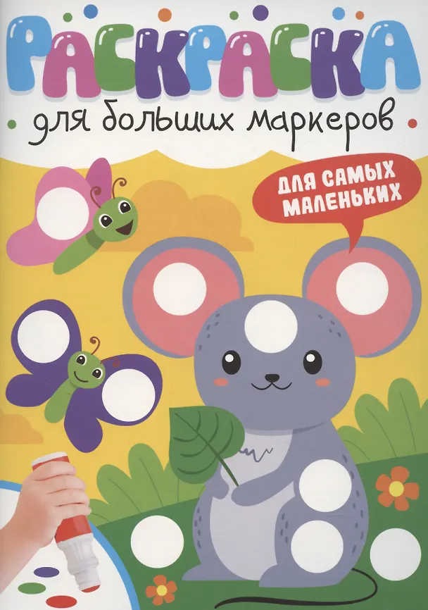 Раскраска с цветными иллюстрациями создана специально для больших точечных маркеров, но также подойдёт для рисования пальчиками, карандашами и фломастерами! На каждой странице есть белые кружочки, которые необходимо аккуратно закрасить соответствующим цветом, благодаря чему ребёнок активно тренирует мелкую моторику, логику, аккуратность и учится запоминать цвета.