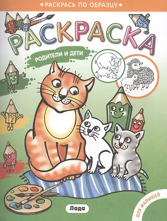Раскраска для малышей. . Родители и детки/Котята..