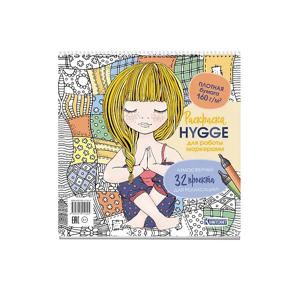 Раскраска Hygge для работы маркерами включает в себя 32 проекта для вдохновения, расслабления и творчества.