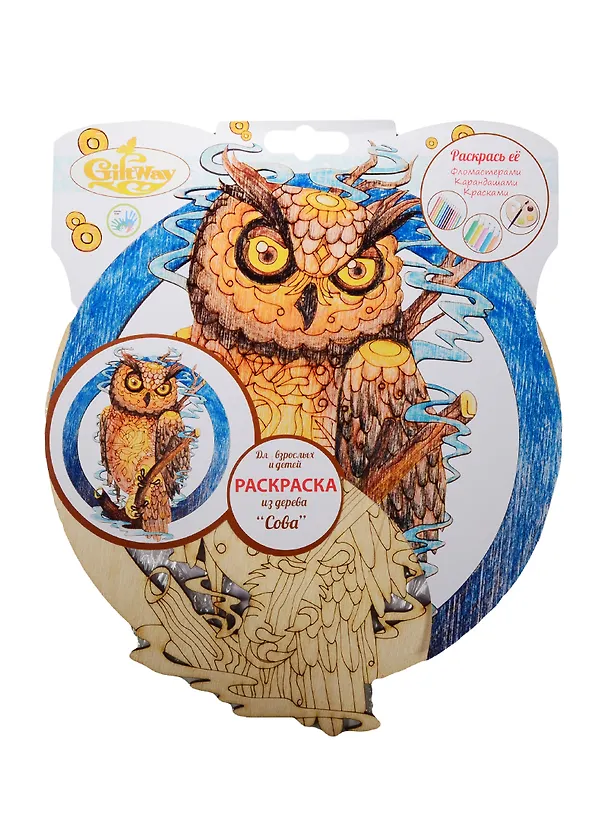 Раскраска из дерева Сова Для взрослых и детей Giftway (КоллЖивМир) (упаковка)