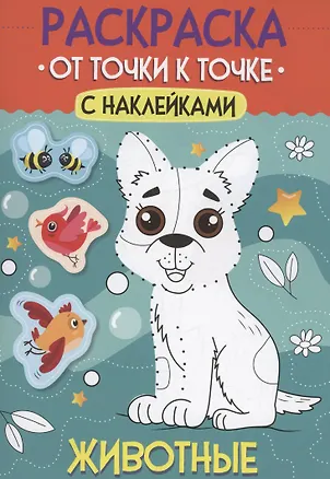 Раскраска. От точки к точке с наклейками. Животные