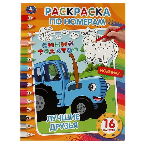 Раскраска по номерам с 16 наклейками. Синий трактор. Лучшие друзья, ТМ «УМка»: