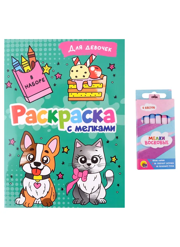 Серия раскрасок с восковыми мелками. Каждая картинка – из крупных элементов и с толстым контуром: всё для удобства раскрашивания мелками!