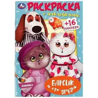 Раскраска с наклейками. Барсик и его друзья. 16 наклеек