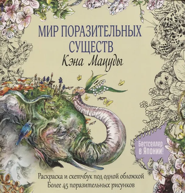 Раскраска-скетчбук Мир поразительных существ Кэна Мацуды (желтая со слоном) (м) Кэн Мацуда